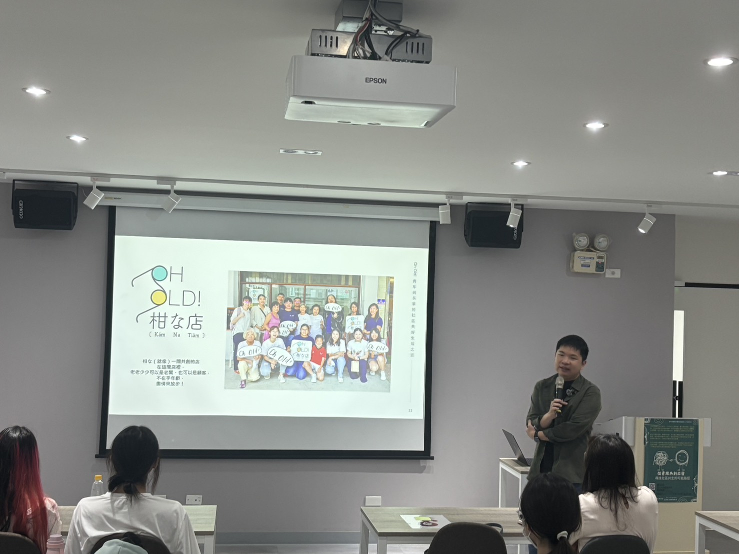 在高齡化浪潮持續加速之際,如何重新想像長者在社會中的角色,成為當前重要課題。2026年3月30日,在教育部高教深耕「世代共融與永續的社會創新人才培育計畫」的支持下,輔仁大學社會學系邀請成功大學建築學系盧紀邦博士與「OH OLD」共同創辦人林奕仁社區工作者,於SL345舉辦專題講座,分享其在臺南推動「青銀共創」的實踐經驗,帶來一場結合建築、社區與世代互動的深度對話。